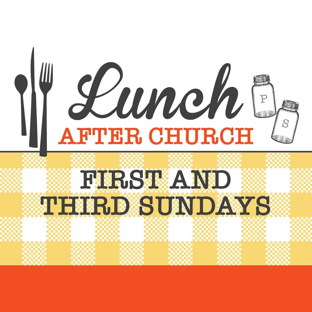 Enjoy lunch after church every first and third Sunday in the Green Room. Everyone is invited. The meal is free. Donations are accepted but not expected.
